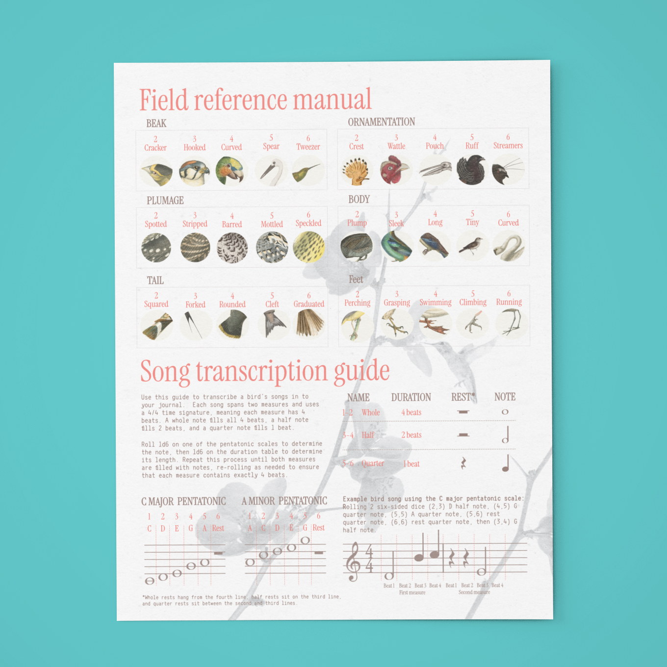 2. Rolling 6 six-sided dice to spot the bird and sketch what you see. Careful, if you roll three 1s and takes off before you can sketch it!